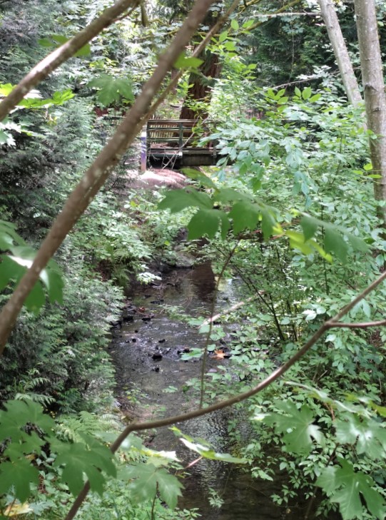I wanted to go back and visit the old house near the woods and the creek that flowed in front. After a bit of research I learned there had been extensive cleanup and restoration of the area and a new Legacy Trail added. Longfellow, it turns out, is one of four free flowing creeks in Seattle, this one flowing year round into the Duwamish River. It is now home to trout, coho salmon and salamander. Evidence of beaver activity can also be found. At the headwaters of the Longfellow is the Roxhill Bog, a peat bog 10,000 years old, which is currently undergoing restoration so it can continue to naturally filter the water.
