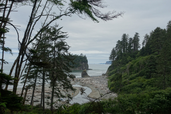 Day 3 Sleep in while hubby catches trout in the Sol Duc River; afterwards break camp and head west towards the rugged Washington Coast at Ruby Beach.