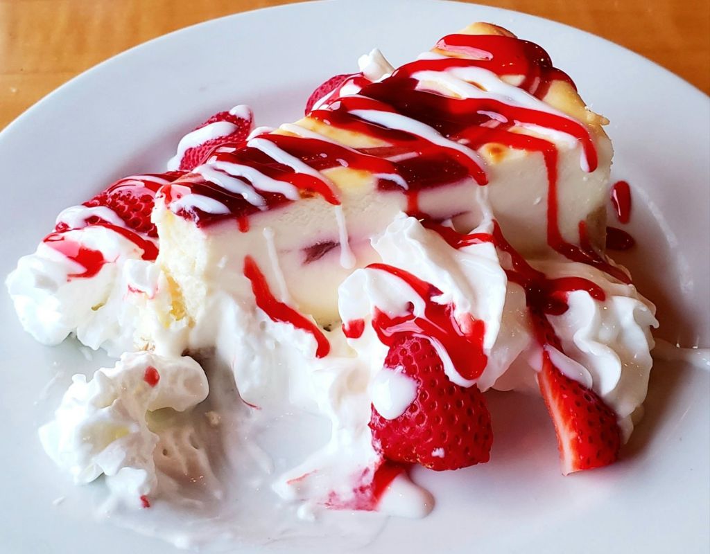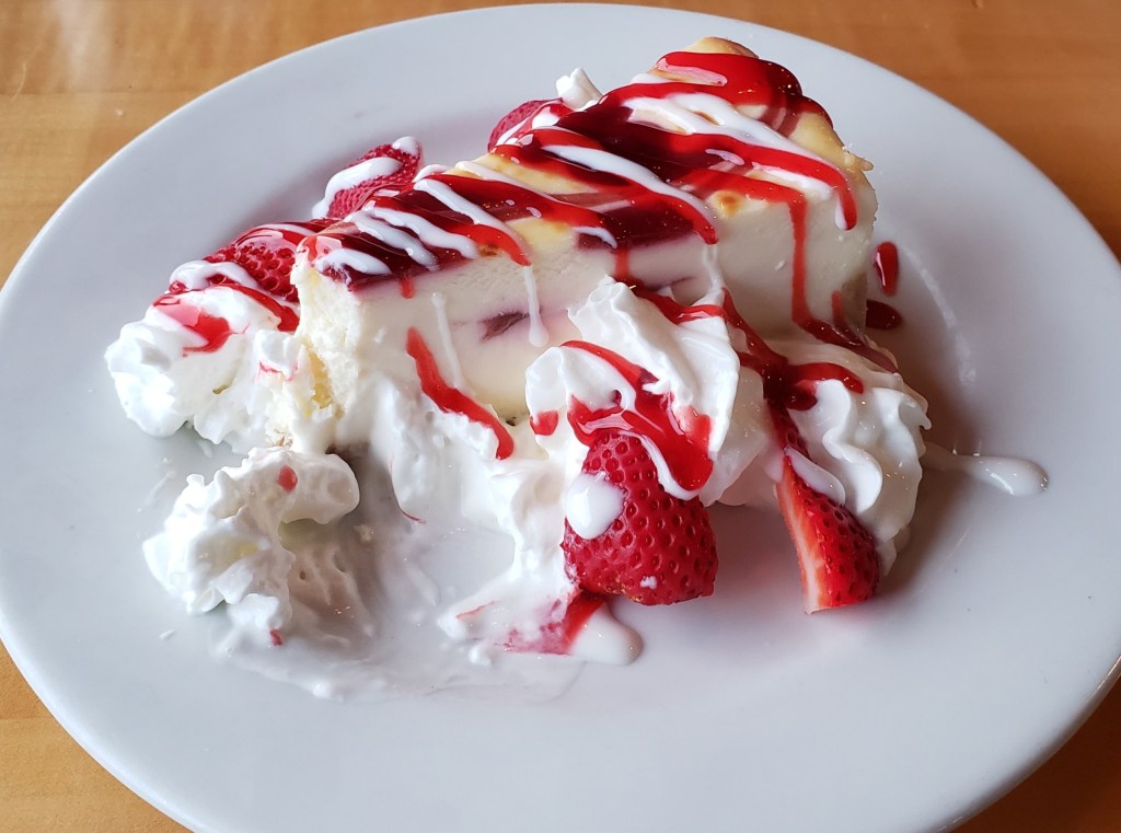 We ate at a restaurant overlooking the bay and the food was great, but it’s the dessert that works nicely for red and white.