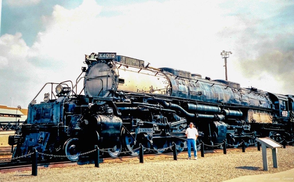 We once visited Steamtown National Historic Site in Scranton, Pennsylvania, where I took this picture of Bob in front of Big Boy Steam Locomotive # 4012.