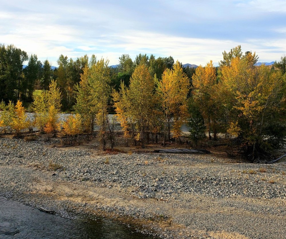 I crossed the footbridge and enjoyed the lovely fall colors reflecting in the Wenatchee River. I saw salmon swimming upstream and humans wading in the shallow waters – look closely and you’ll see them.